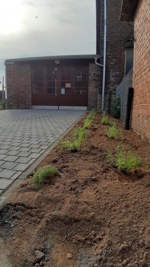 - Die Grünstreifen neben dem Museumseingang wurden bepflanzt.
