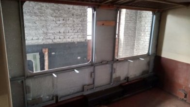 • An unserem Halbpackwagen BD3yg 99 667 wurde im Sitzabteil die Holz-Unterkonstruktion für die Wandverkleidung montiert sowie die Dämmung zugeschnitten und eingebaut.