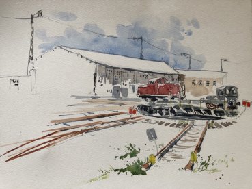 Urban Sketchers besuchen das historische Bahnbetriebswerk Hanau