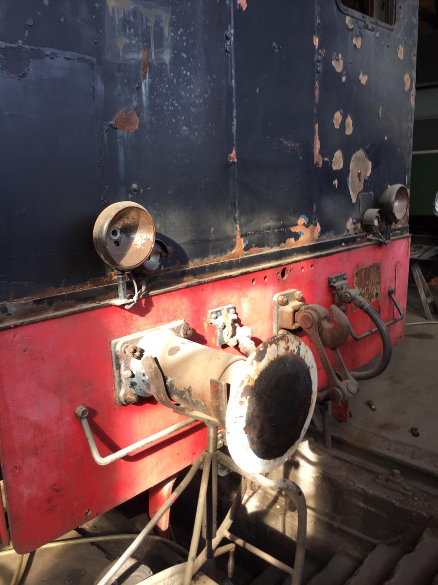 - An der Diesellok 276 wurden die hinteren Puffer zur Instandsetzung demontiert.