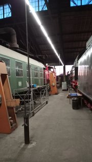 - Im Lokschuppen Nord wurde ein weiteres Gleis wieder mit elektrischer Beleuchtung ausgestattet.