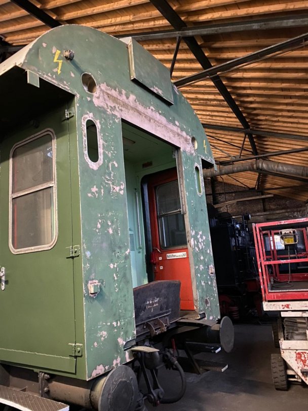- Der Wagen 86 306 wurde gedreht und die Teile an der anderen Stirnwand wurden demontiert und entrostet. Wenn es die Witterung wieder zulässt, wird alles neu lackiert.