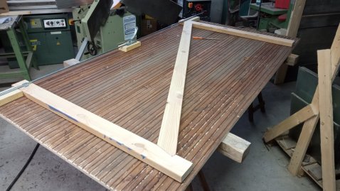 - Für den Feldbahn-Lokschuppen wurde ein zweiflügliges Holztor angefertigt.
