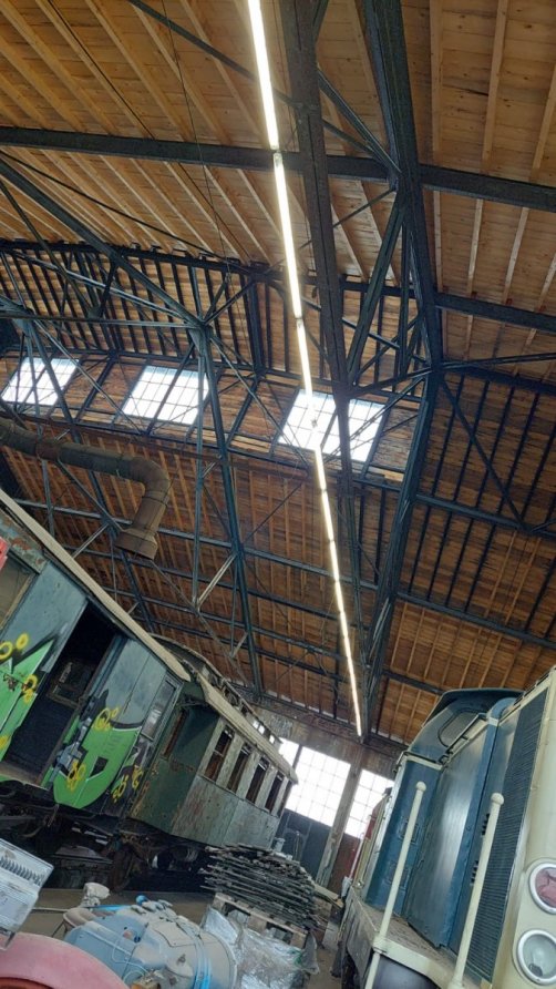 - Zwischen Gleis 7 und 8 im Lokschuppen Nord wurde die fehlende Beleuchtung montiert.