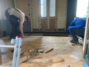 - Die Türen unserer Köf 323 650 wurden abgeschliffen und grundiert. Auch ein Gummi wurde neu zugeschnitten.