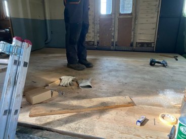 - Der Boden des Gepäckabteils unseres BD3yg wurde montiert.