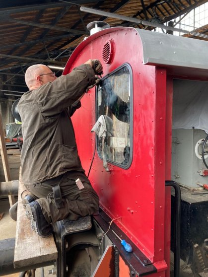 - Das Füherhaus unserer Kleinlok 323 650 wurde fertig lackiert und die Scheiben eingebaut.