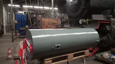 - An unserer Diesellok 276 wurde der Tank fertig lackiert, die instandgesetzte Kühlwasserpumpe einbaut und die Rohrleitungen zum Kühler gereinigt und lackiert.
