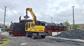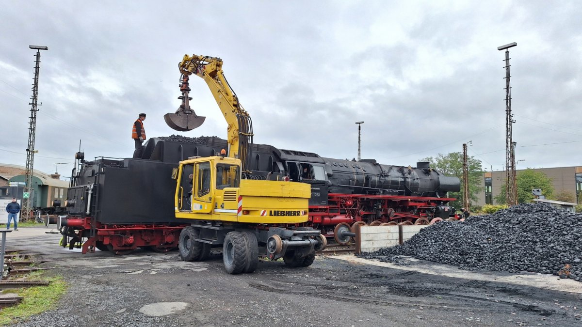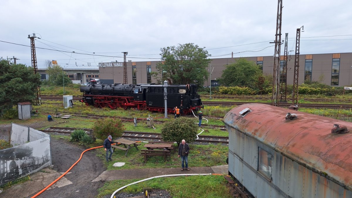 Die beiden Dampflokomotiven wurden im historischen Bahnbetriebswerk Hanau mit ca. 50 m³ Wasser und die 01 1075 mit mehren Tonnen Kohle versorgt.