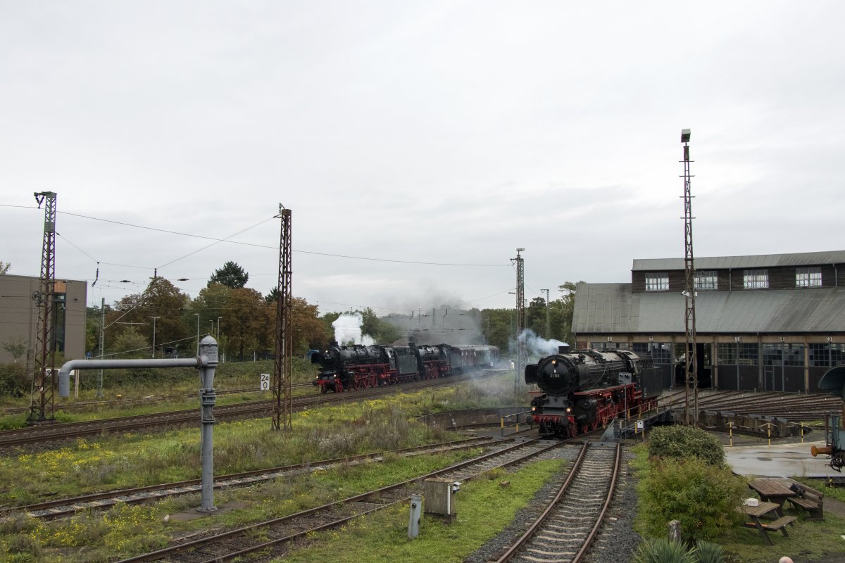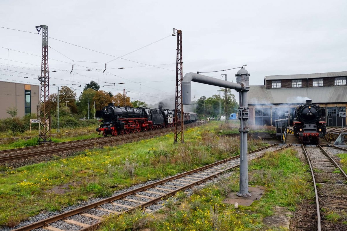 Am 06. Oktober 2025 waren die kohlegefeuerte Dampflok 01 1075 und die ölgefeuerte Dampflok 01 1104 zu Gast im historischen Bahnbetriebswerk Hanau.