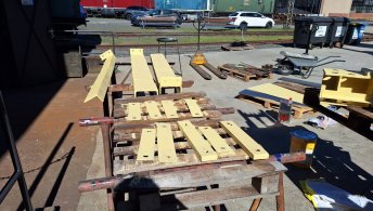 - Weitere Träger wurden von alter Farbe und Rost befreit und neu lackiert.