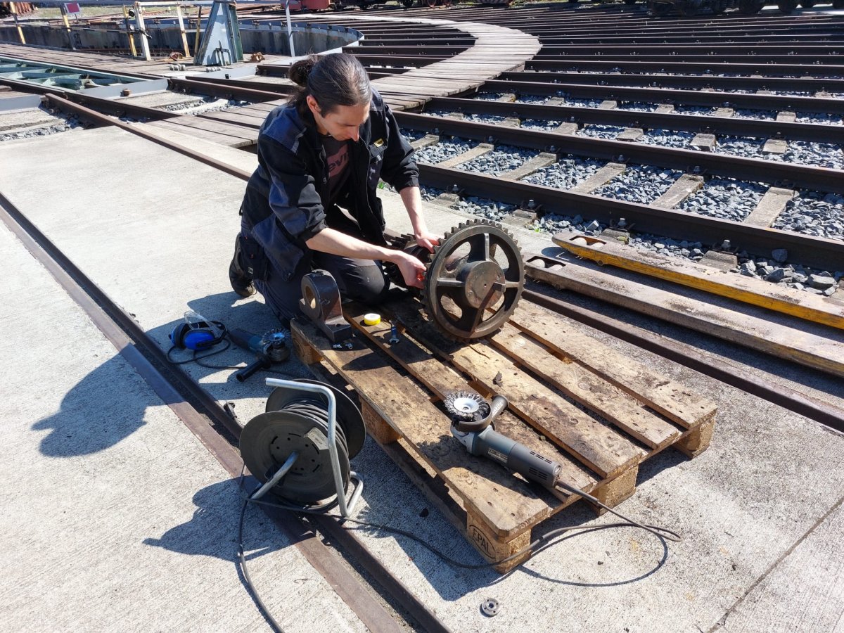 - Es wurden Stahlteile für die Handantriebsseite und das Drehscheibenhäusschen hergestellt und lackiert.