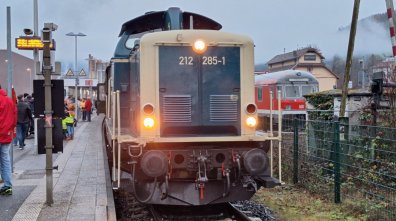 Am ersten Adventswochenende 2025 führte die Museumseisenbahn Hanau e. V. insgesamt drei Sonderfahrten zu Weihnachtsmärkten in der Region durch.