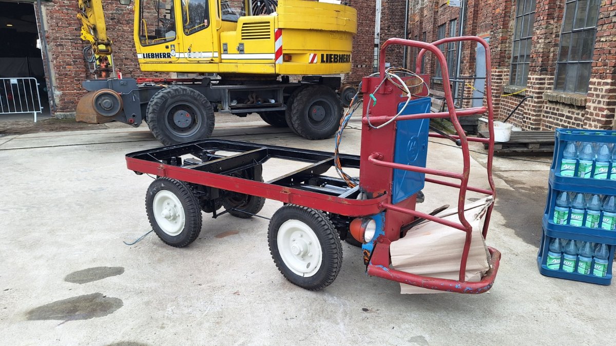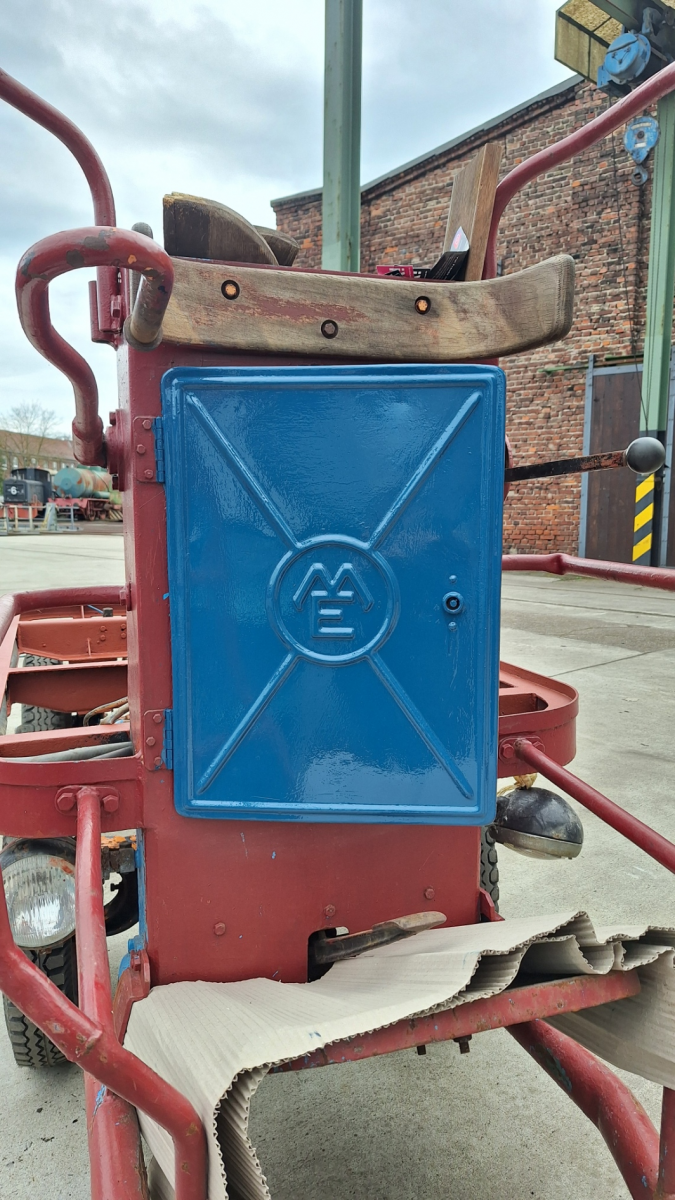 • An der Bahnsteigkarre wurde mit dem Lackieren begonnen.