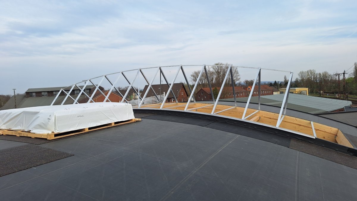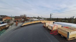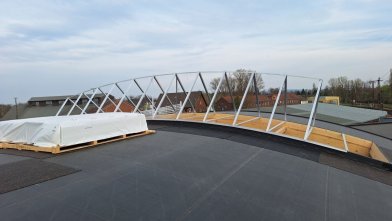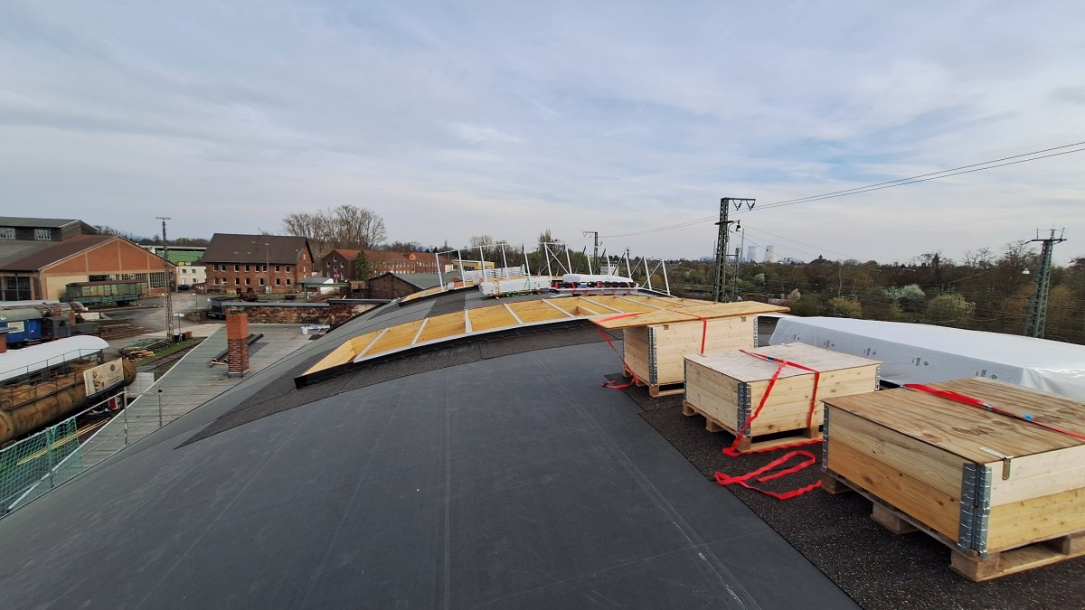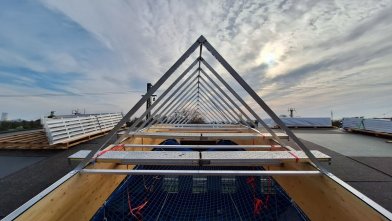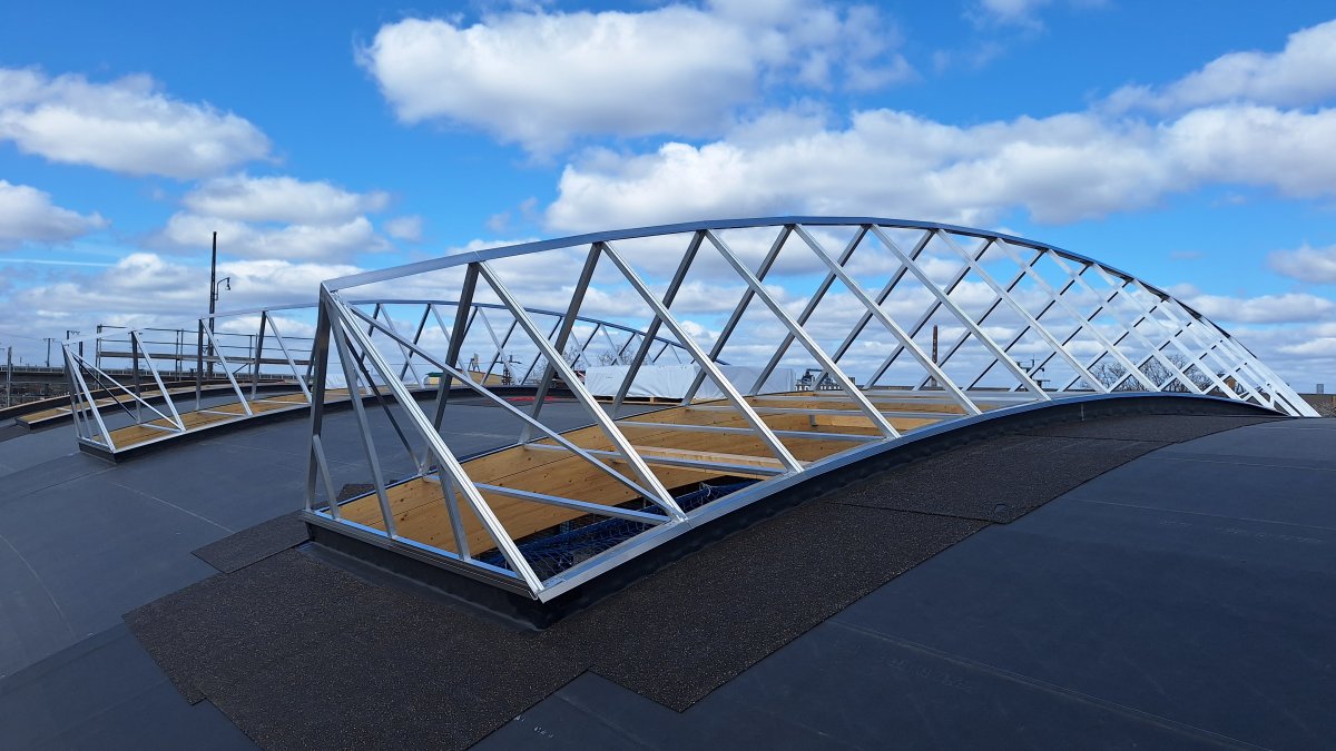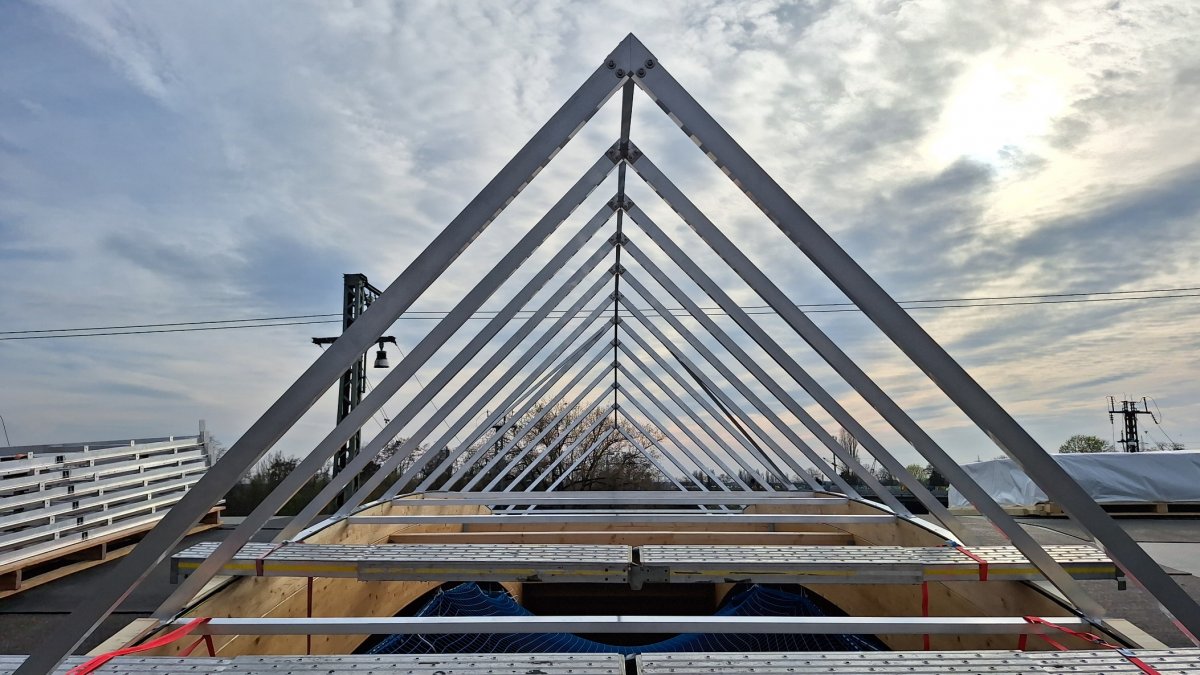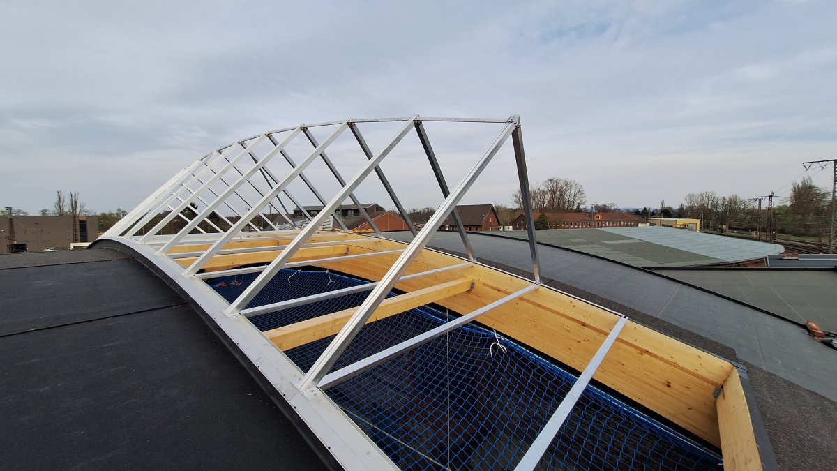 - Die Dachlichter wurden angeliefert und die Baufirma hat mit der Montage begonnen.