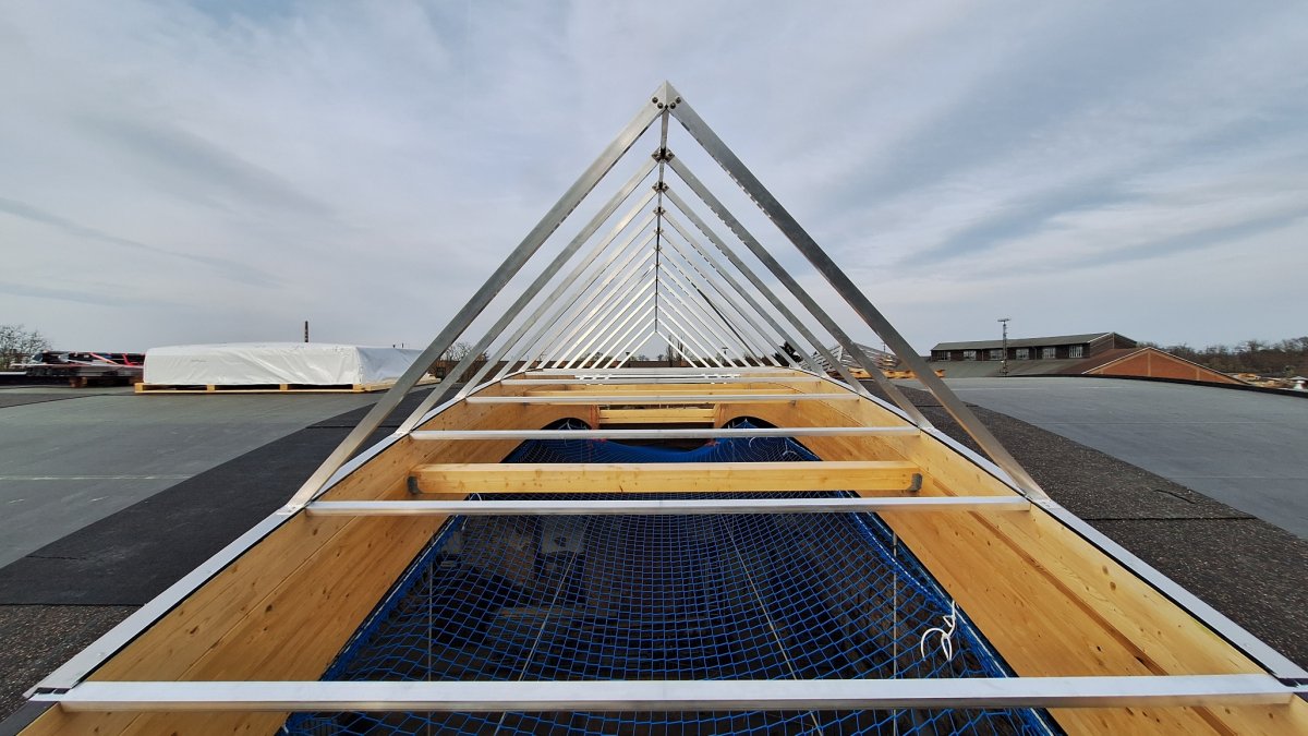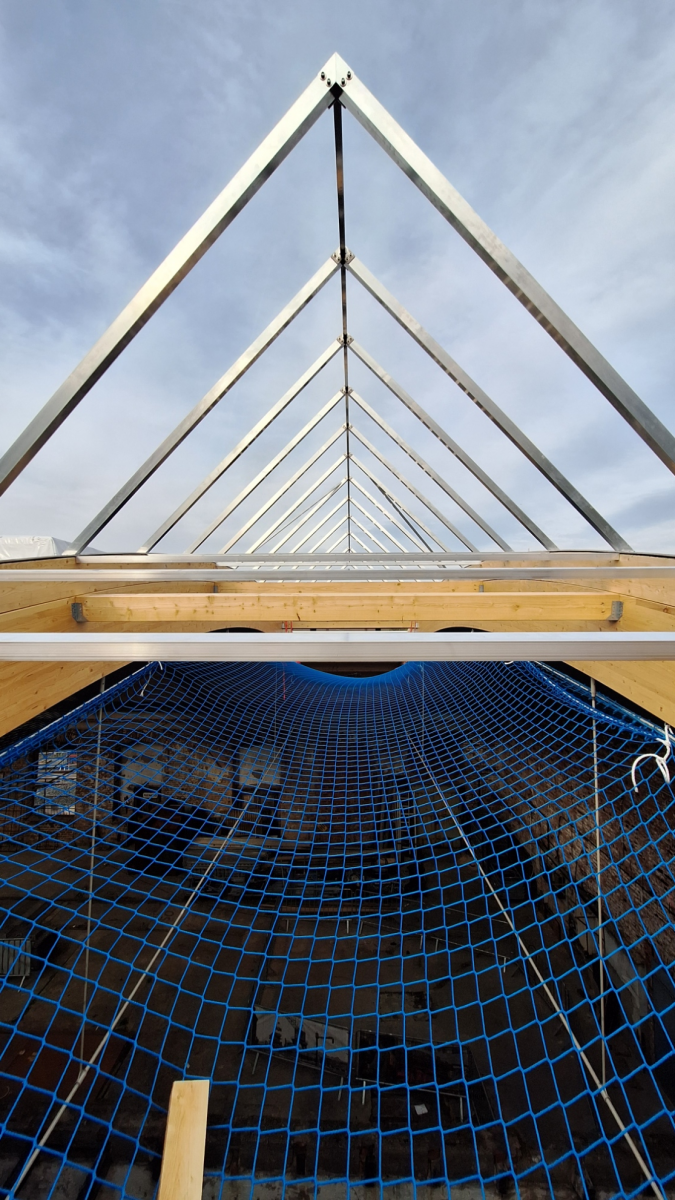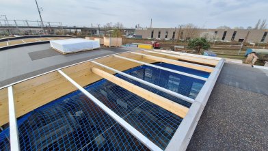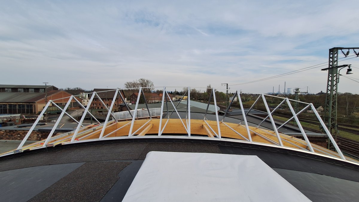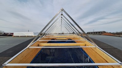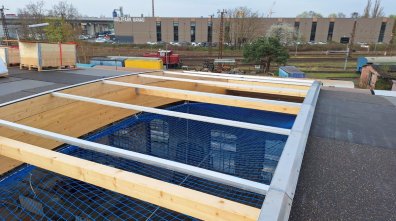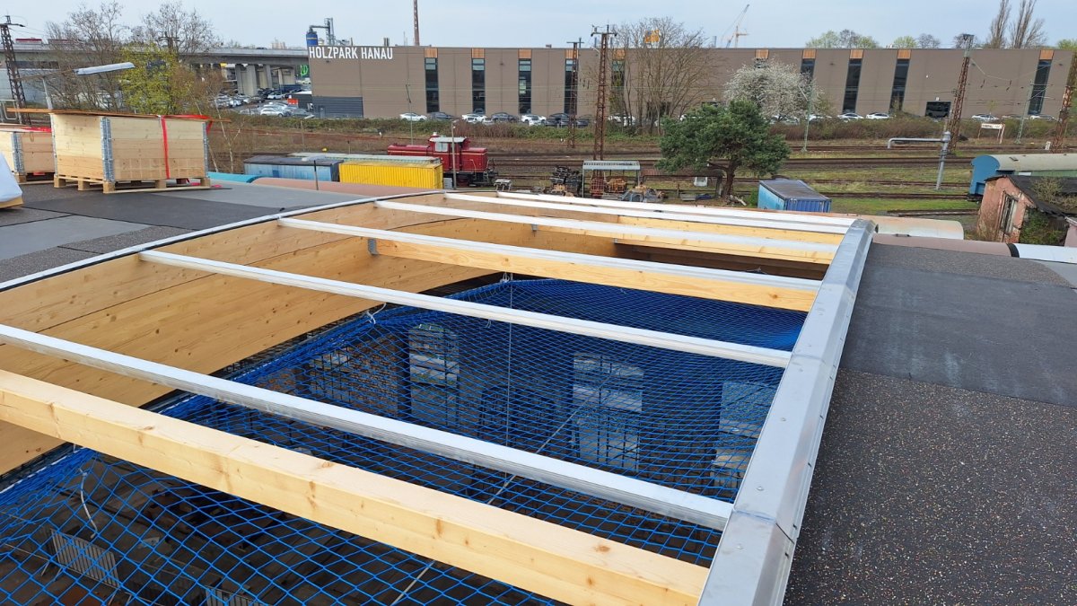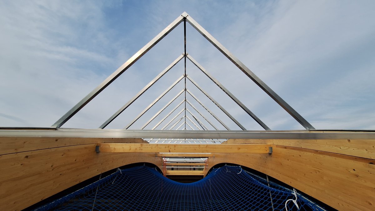 - Die Dachlichter wurden angeliefert und die Baufirma hat mit der Montage begonnen.