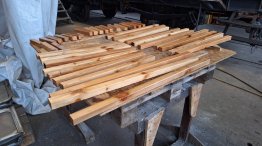 Angefertigte Holzteile für den Weinstraßewagen