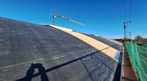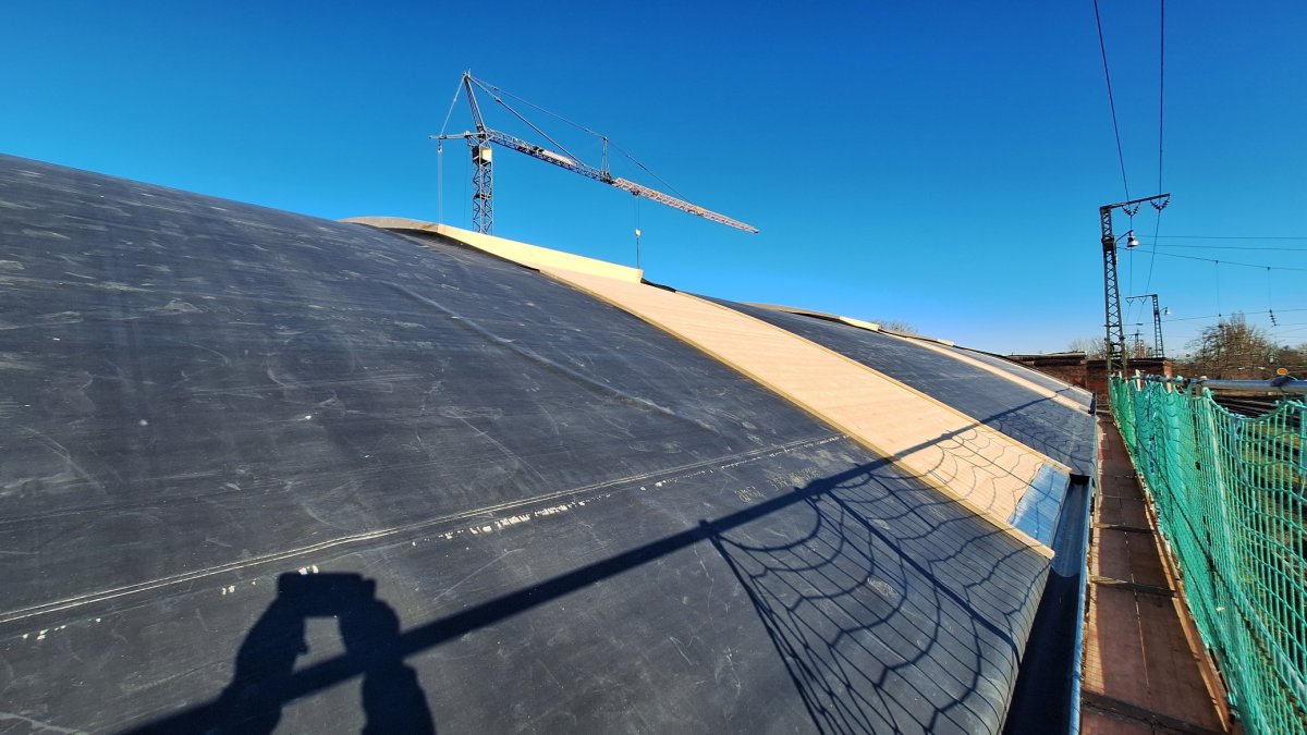 - Die Baufirma hat mit dem aufbringen der Dachhaut begonnen.