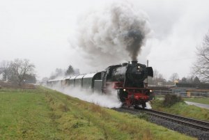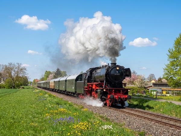 Die Fahrt wird mit der Dampflok 23 042 und unseren Umbauwagen aus den 1950er/60er-Jahren durchgeführt.