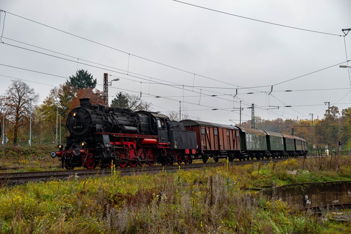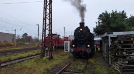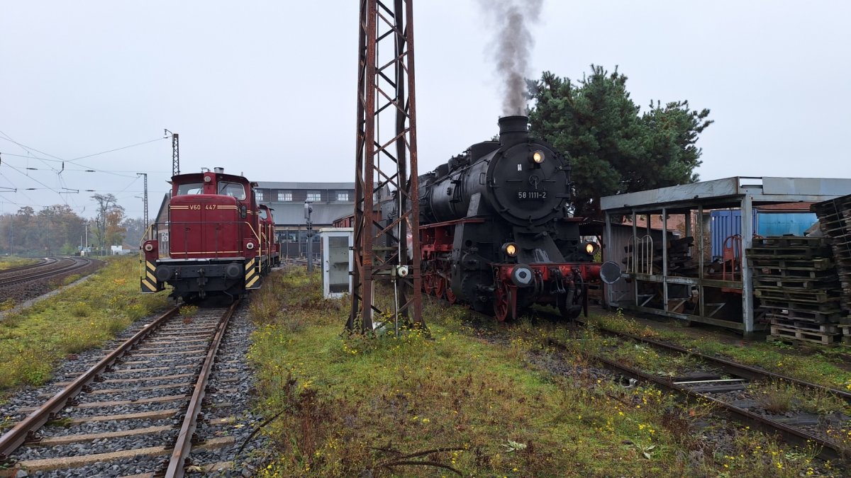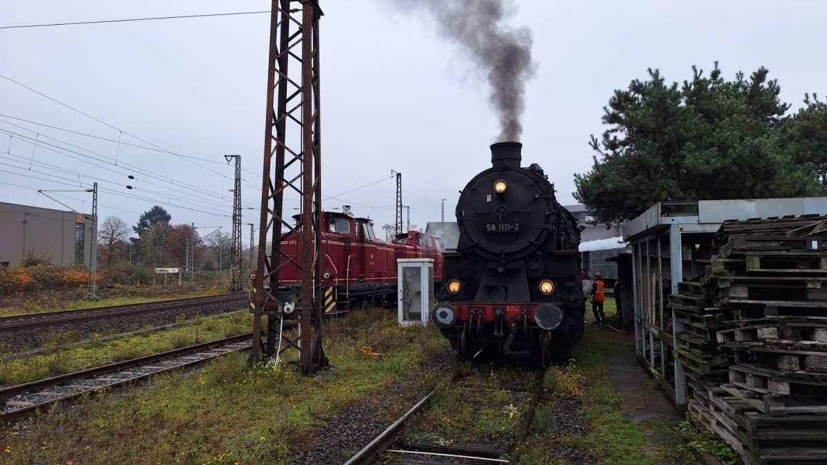 - Am 09.11.2025 war die Dampflok 58 311 zu Gast im historischen Bahnbetriebswerk Hanau. Sie hat unseren Umbauwagenzug von einer Vermietung wieder zurück gebracht und wurde bei uns vor Ort mit Wasser versorgt.