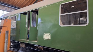 - Am neu erworbenen B4yg wurden verschiedene kleinere Arbeiten durchgeführt. An den Türen wurden neue Schilder/Piktogramme angebracht, die hierfür extra nach den Originalen nachgezeichnet und als Aufkleber bestellt wurden.