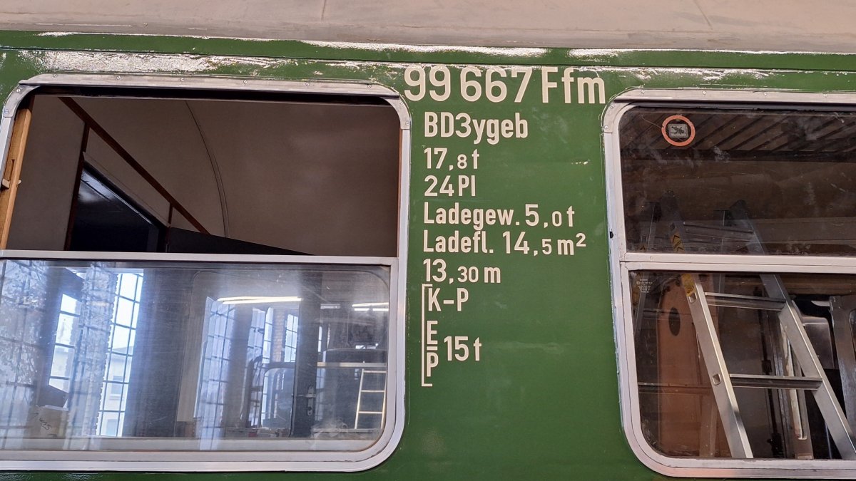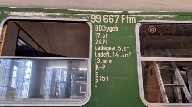 - Auf der einen Wagenhälfte wurde die Beschriftung angebracht