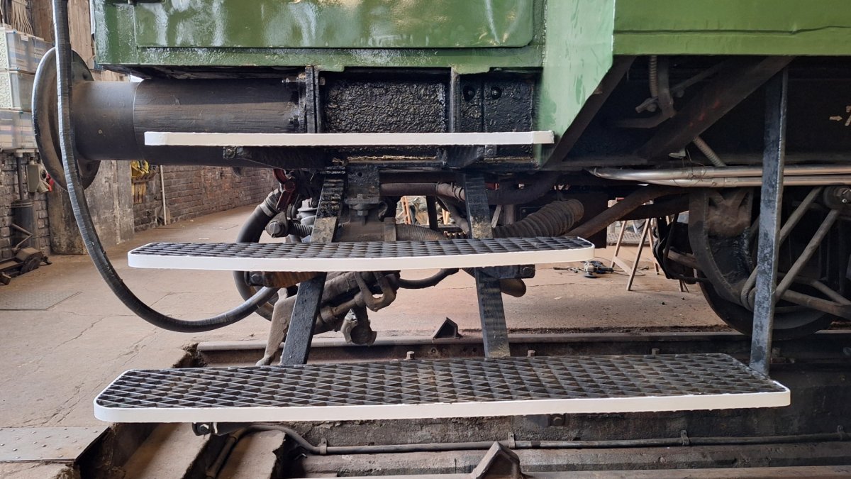 - Die Kanten der Einstiegstritte wurden weiß lackiert
