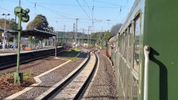 Anschließend fuhr unser Sonderzug wieder über die Einstiegshalte Koblenz-Lützel und Koblenz-Stadtmitte zurück. In Eschofen wurd die Dampflok, wie bereits bei der Hinfahrt, mit Wasser versorgt.