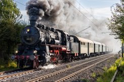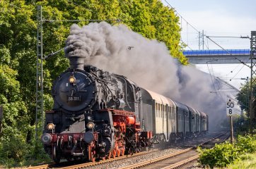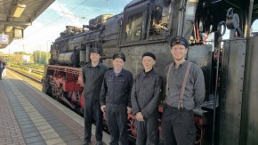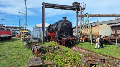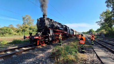 Die Dampflok wurde im DB Museum für die Rückfahrt des Sonderzuges durch das Lokpersonal vorbereitet.
