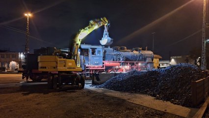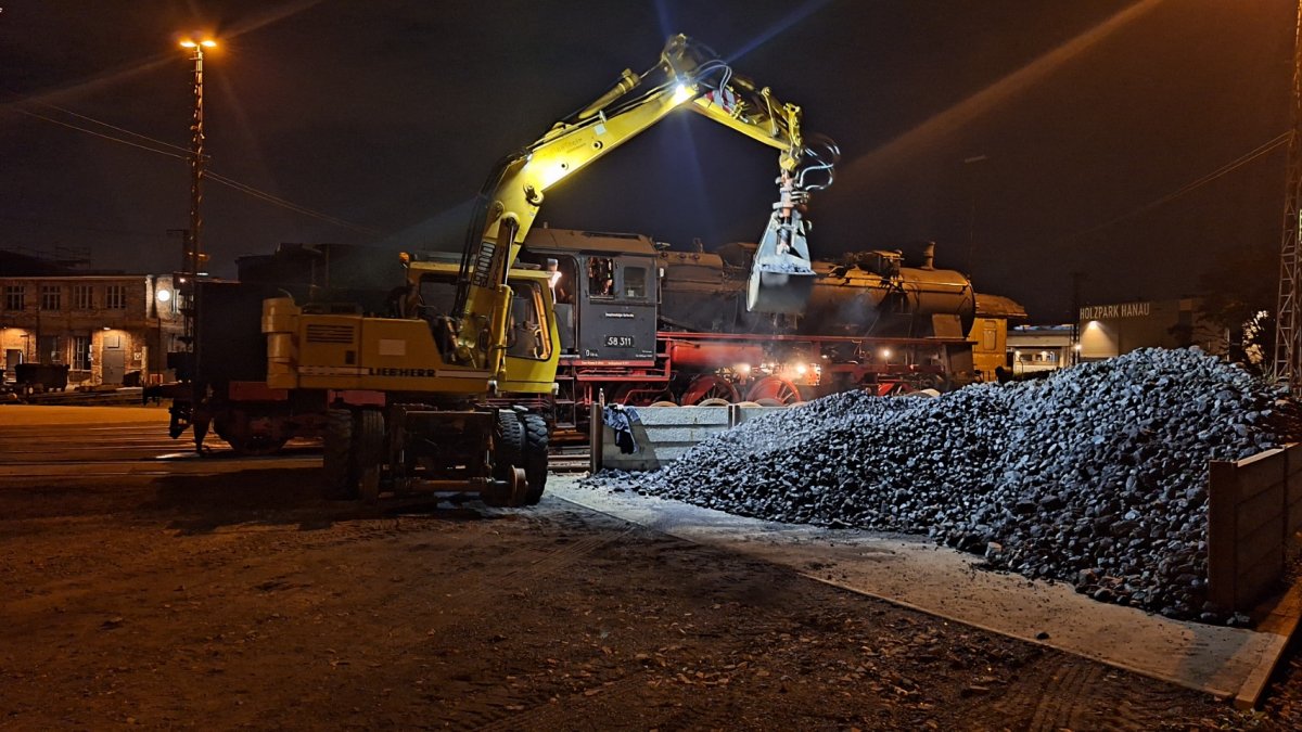 Nachdem in Hanau Hbf alle Fahrgäste aus dem Zug ausgestiegen waren, wurde der Zug in das historische Bahnbetriebswerk Hanau rangiert. Dort wurde die Dampflok mit Wasser und Kohle versorgt und für die nächtliche Überführung nach Karlsruhr vorbereitet.