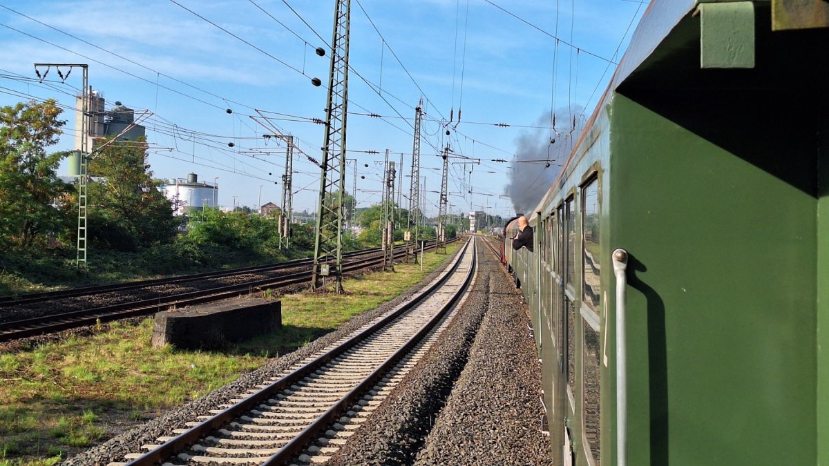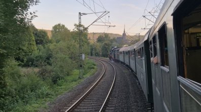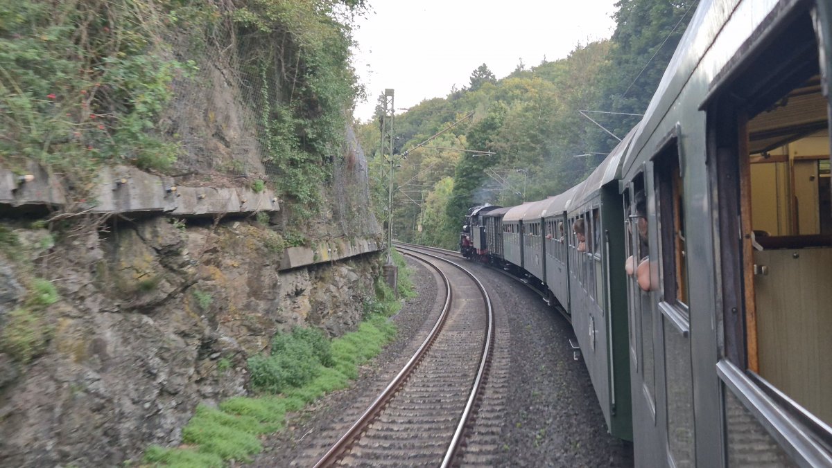 Die Fahrt unseres Zuges, welcher aus zwei vierachsigen und vier dreiachsigen Umbauwagen, sowie unserem Güterwagen gebildet wurde, fuhr entlang des Mains über die Höhen des Taunus und entlang der Lahn Richtung Koblenz.
