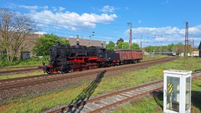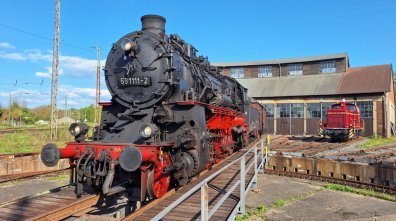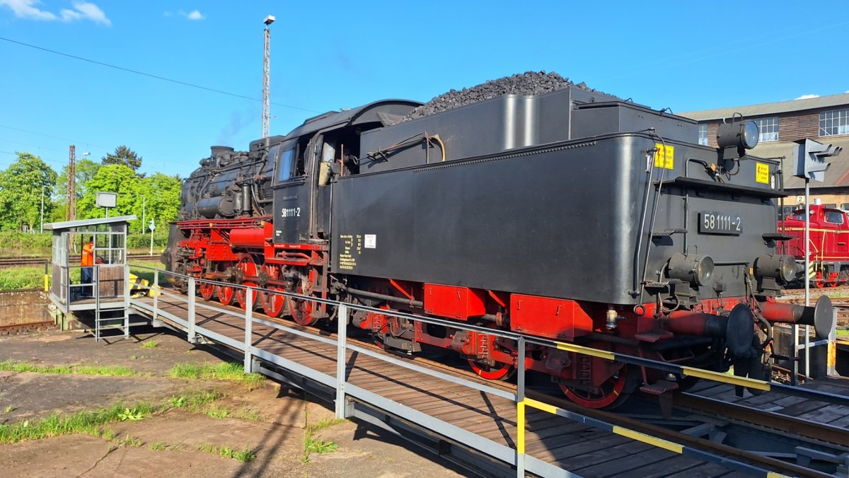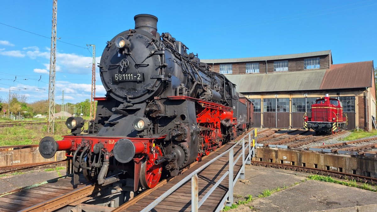- Das historische Bahnbetriebswerk Hanau ist immer wieder Anlaufstelle für Dampflokomotiven. Am 21. April 2026 war die Dampflok 58 1111-2 (58 311) wieder bei uns zu Gast, um mit Kohle und Wasser versorgt zu werden. Außerdem konnte die Lokmannschaft unsere Untersuchungsgrube für eine umfangreiche "Nachschau" nutzen. Anschließend fuhr sie weiter zu ihrem Heimatstandort Ettlingen.