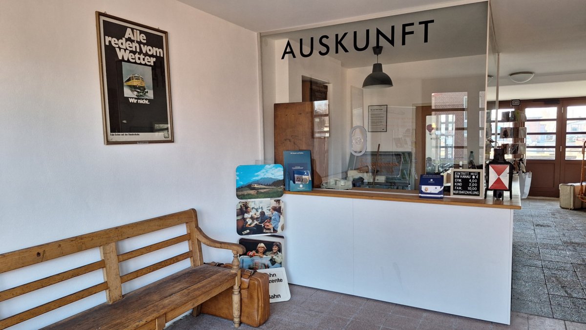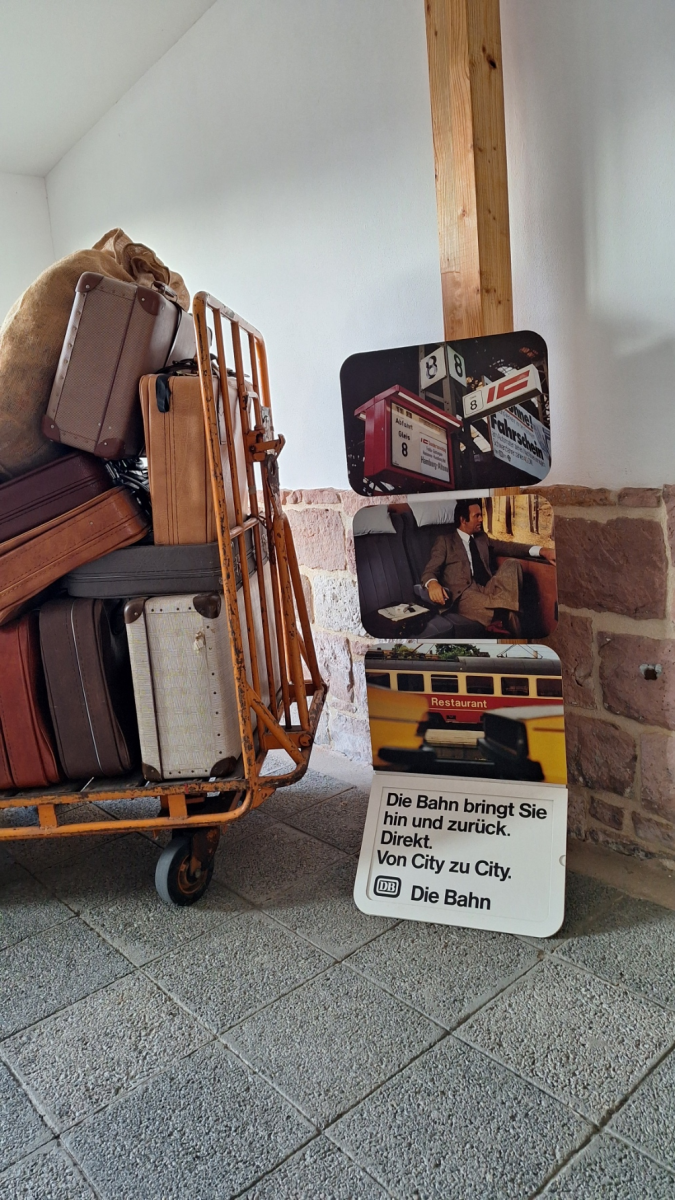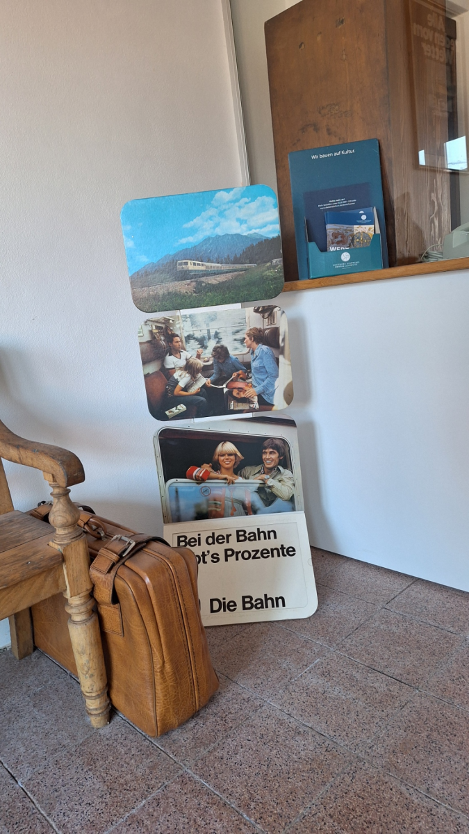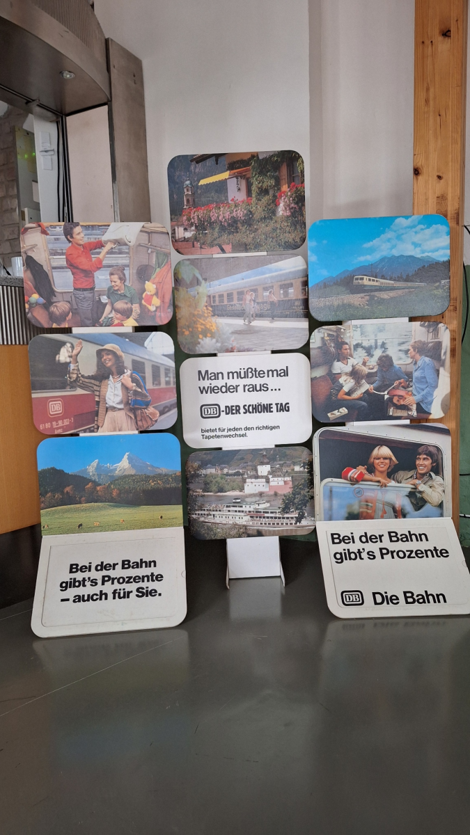 - Für die historische Ausgestaltung des Eingangsbereiches und des Schulungsraumes haben wir von einem Mitglied fünf Werbeaufsteller der Deutschen Bundesbahn aus den 1980er-Jahren als Spende erhalten.