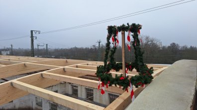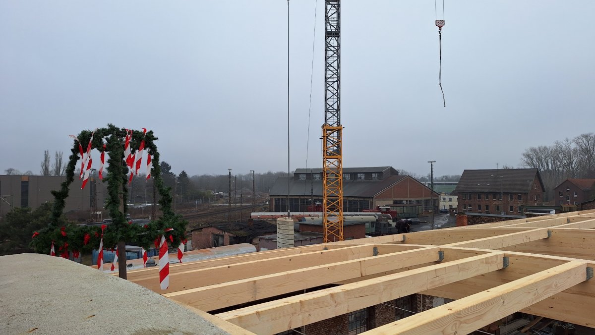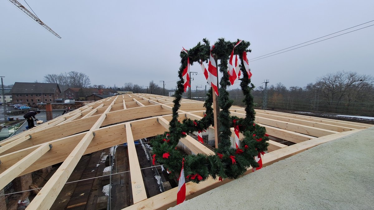 - Im Rahmen einer kleinen internen Feierstunde fand am 07.02.2026 ein Richtfest statt. Hierfür wurde eine Krone hergestellt, die das Dach schmückt. Im Rahmen des Richtfestes wurde durch den Zimmermannsmeister ein Richtspruch vorgetragen.