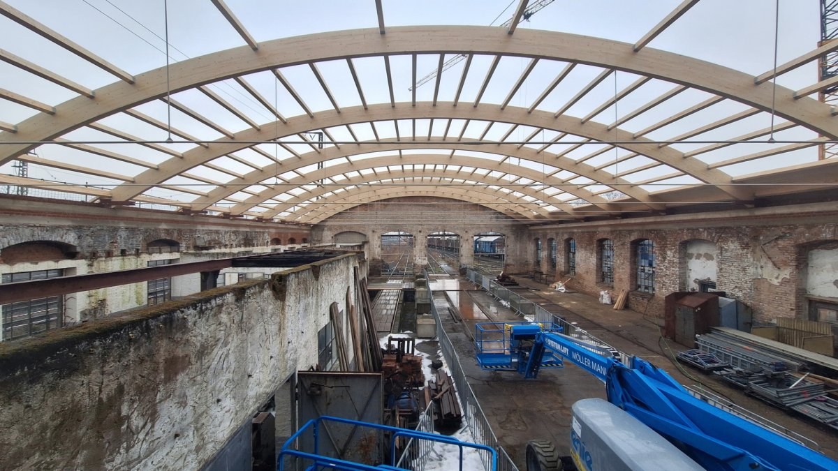 - Die Dacharbeiten am Rechteckschuppen haben begonnen. Wir haben diese Woche schon in zwei Beiträgen hierüber berichtet (beide Berichte finden Sie hier und hier).
