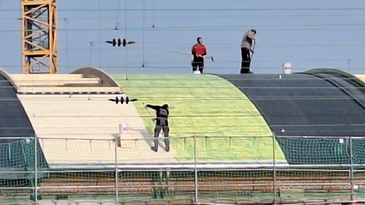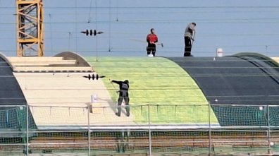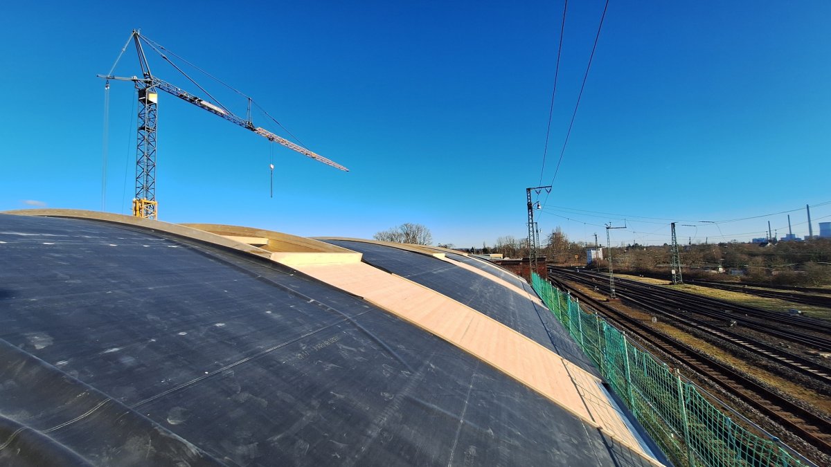 - Die Baufirma hat mit dem aufbringen der Dachhaut begonnen.
