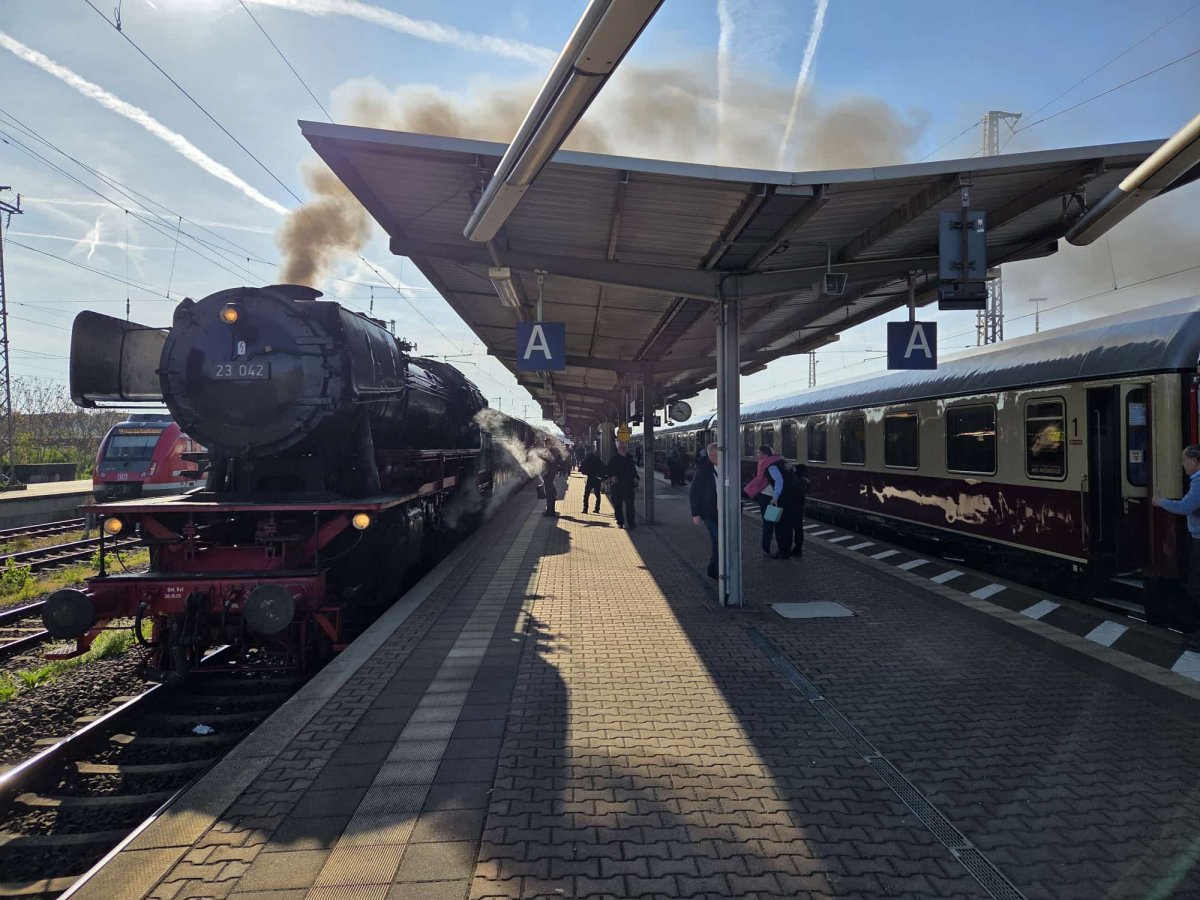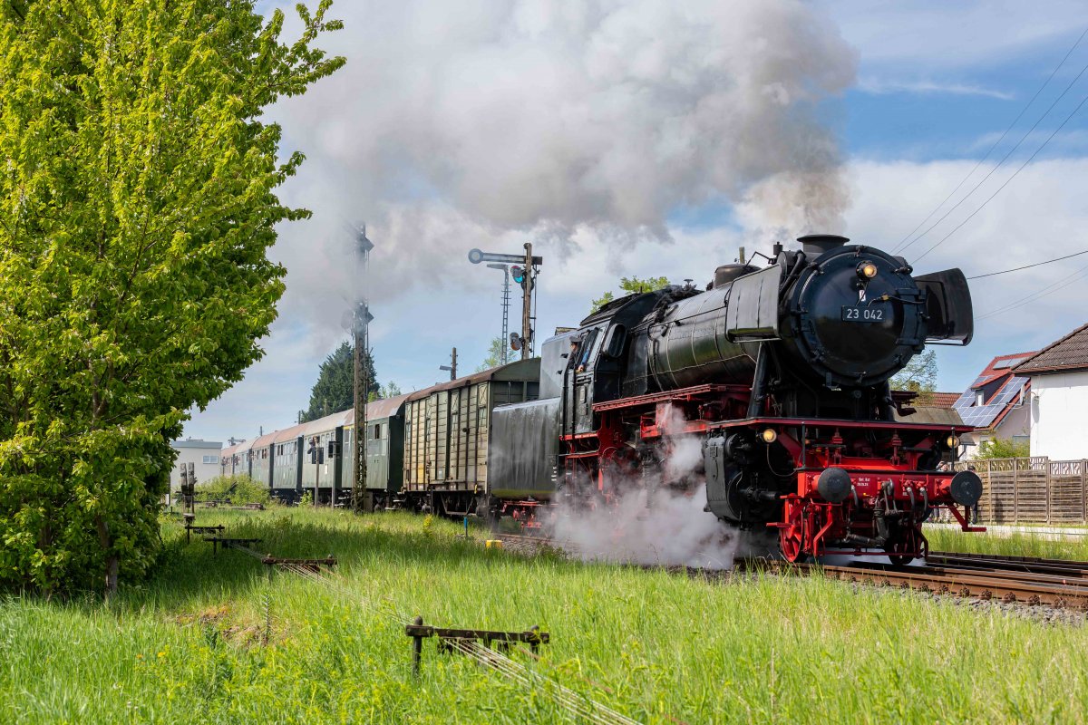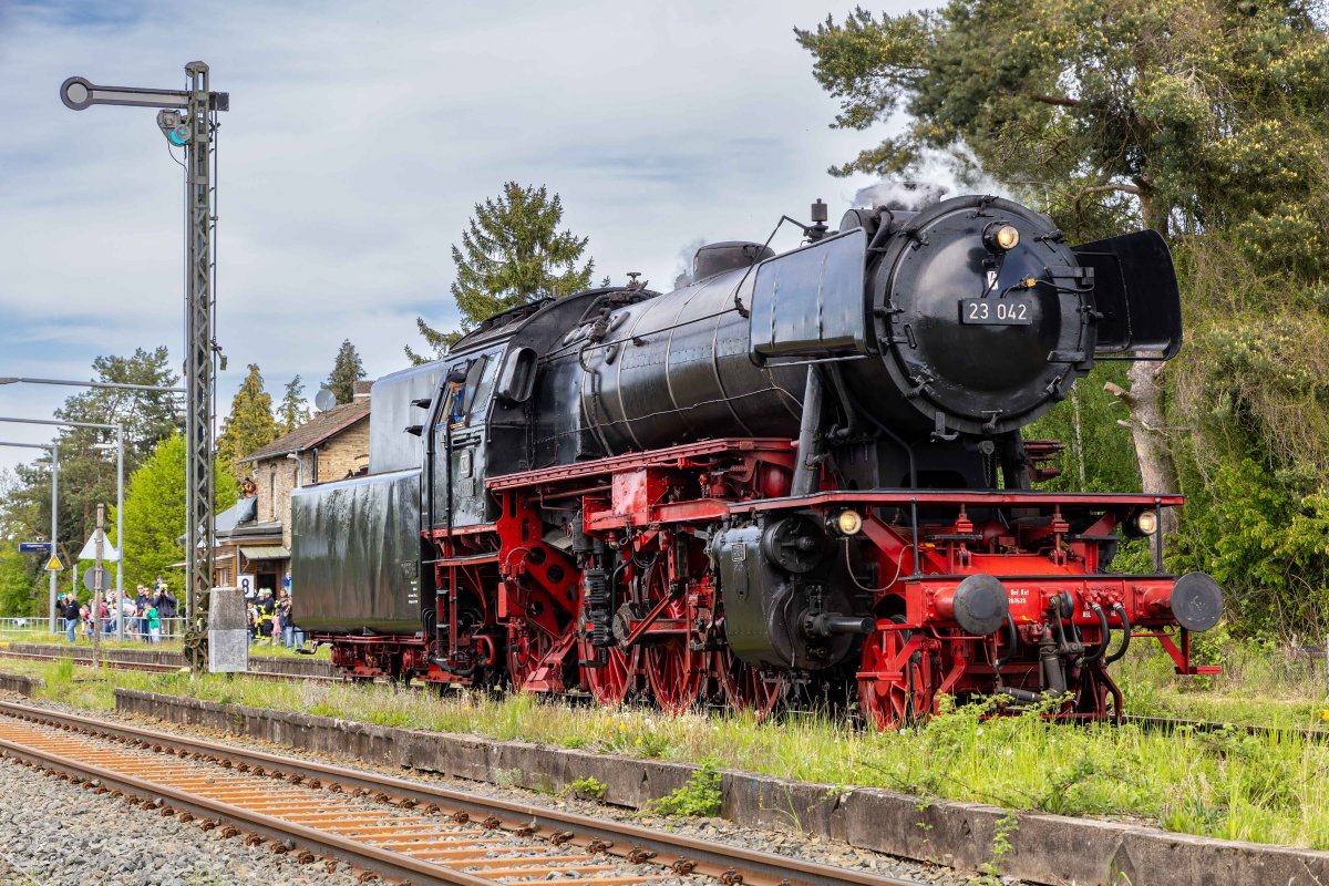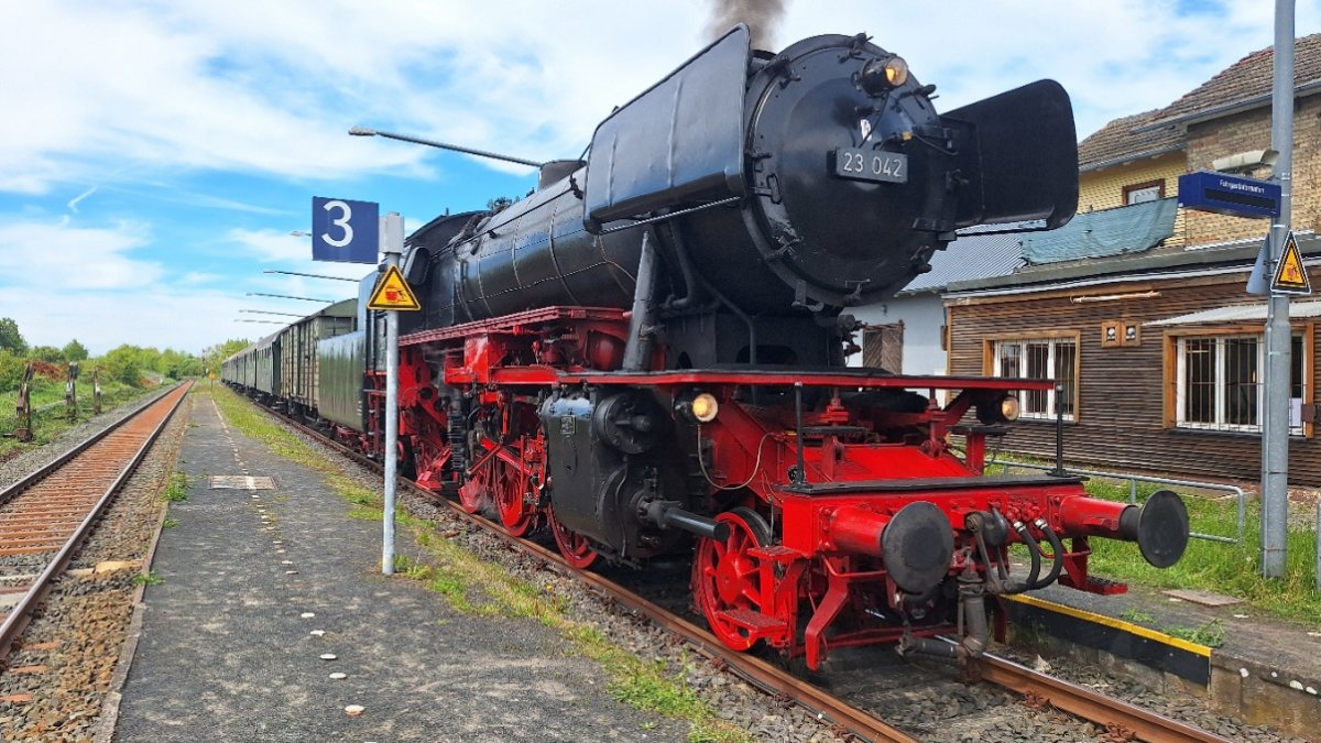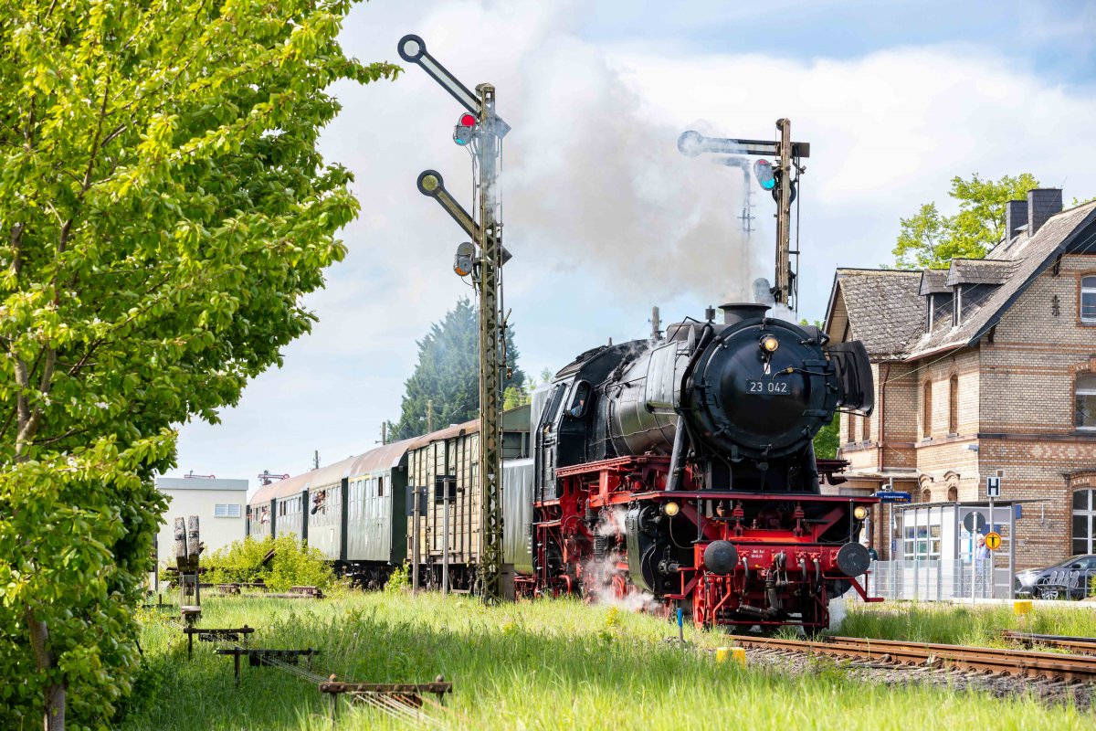 Unser Sonderzug, welcher aus unseren historischen Umbauwagen gebildet wurde, wurde von der Dampflok 23 042 gezogen.