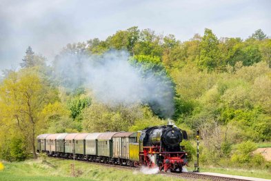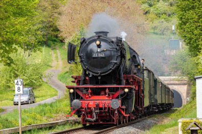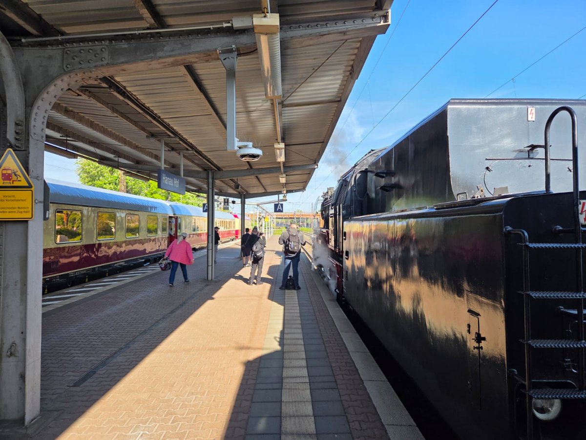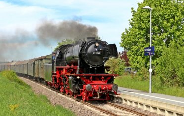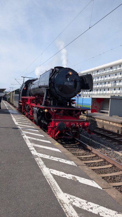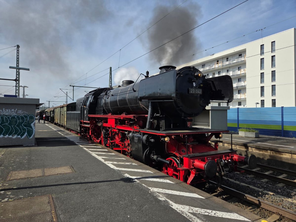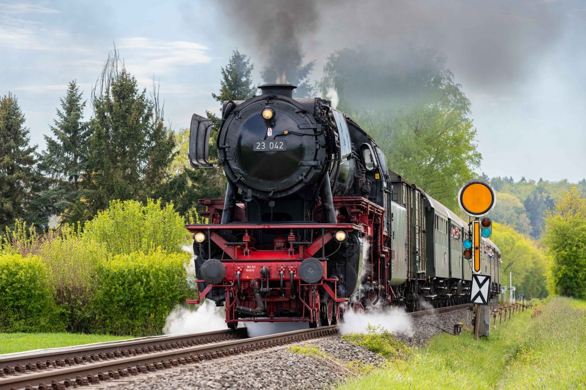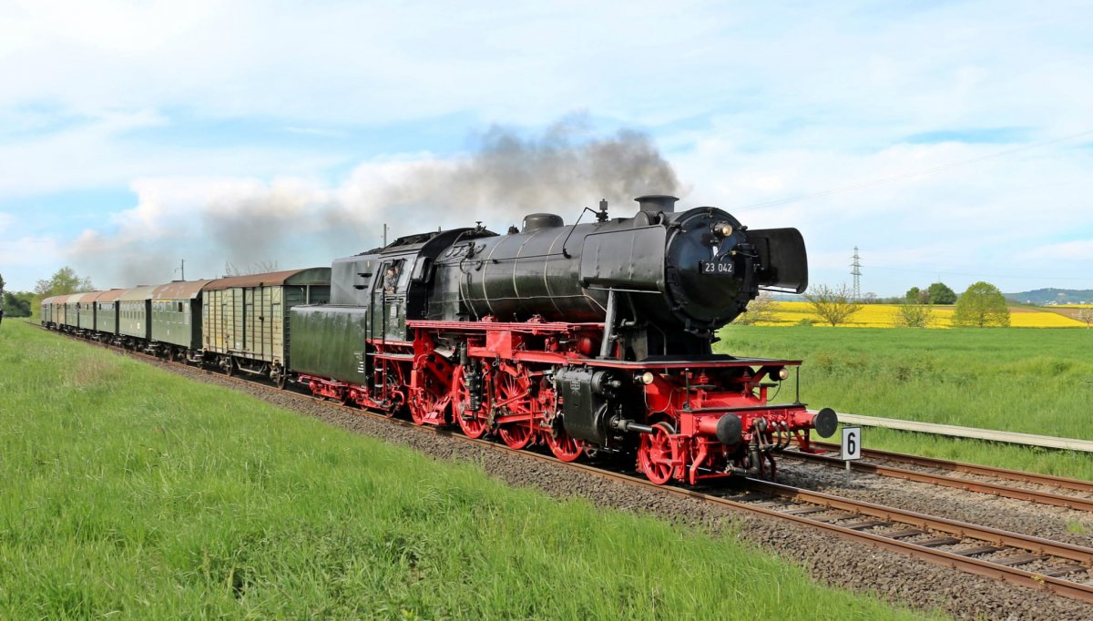 Unser Sonderzug, welcher aus unseren historischen Umbauwagen gebildet wurde, wurde von der Dampflok 23 042 gezogen.