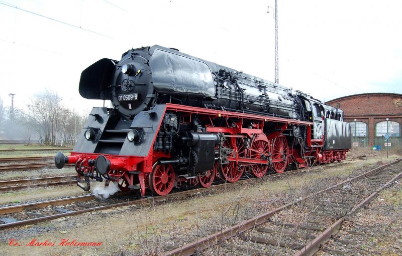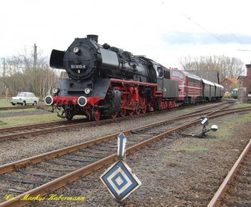 Eine Nohab-Diesellok, Güterzugdampflok 50 3610 und Schnellzugdampflok 01 509 fuhren am 31. März unser Bahnbetriebswerk an. Dort wurden die Dampfloks restauriert, um dann weiter zu fahren in die Eifel zum Dampfspektakel "175 Jahre Deutsche Eisenbahnen". Bei dieser Gelegenheit wurden drei Umbauwagen aus unserem Zug mitgenommen, die bei dieser Veranstaltung mitfahren.