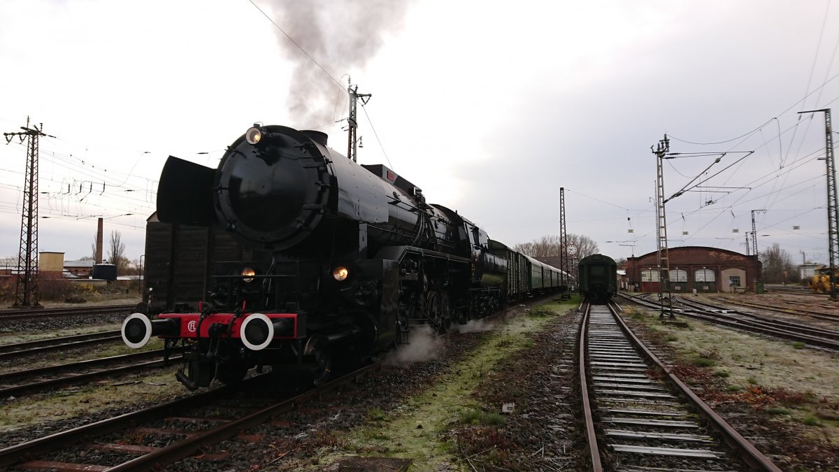 Sonntag 15.12. waren Nikolausfahrten auf der Kahlgrundbahn geplant, die leider aus logistischen bzw. organisatorischen Gründen seitens der Infrastruktur der Strecke kurzzeitig nicht möglich waren. Damit wir unsere Fahrgäste in Kahl nicht im Regen stehen ließen, wurden kurzfristig zwei Fahrten von Kahl nach Aschaffenburg eingelegt. Wir entschuldigen uns nochmal hierfür für die Unannehmlichkeiten, die vielleicht dem einen oder anderen Fahrgast entstanden sind. Es kamen für die Fahrten nach Aschaffenburg die Dampflok 5519 der CFL und am anderen Zugende die Diesellok V60 447 zum Einsatz.