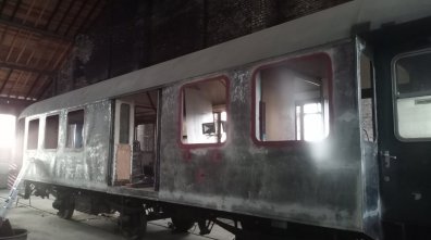 • An unserem Halbpackwagen BD3yg 99 667 wurde im Sitzabteil die Holz-Unterkonstruktion für die Wandverkleidung montiert sowie die Dämmung zugeschnitten und eingebaut.
