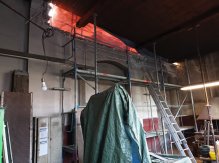 In den vergangenen Wochen konnten auch die Instandsetzungsarbeiten am Mauerwerk des Rechteckschuppens beginnen.