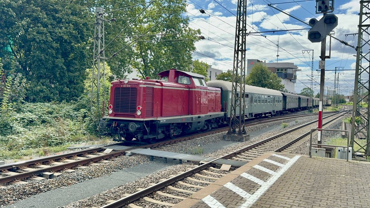 Der Zug der Museumseisenbahn Hanau e. V. verließ Hanau mittags in Richtung des Mittelrheintals.