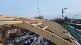 Am 04.02.2026 wurden die noch fehlenden vier Dachbinder geliefert.