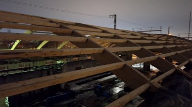 Desweiteren wurden die sechs Binder für die drei Dachlichter angeliefert.