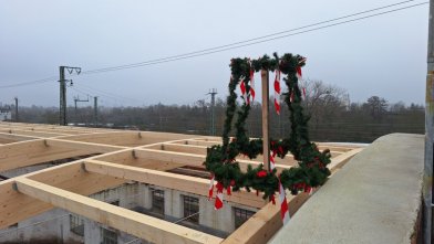 - Im Rahmen einer kleinen internen Feierstunde fand am 07.02.2026 ein Richtfest statt. Hierfür wurde eine Krone hergestellt, die das Dach schmückt. Im Rahmen des Richtfestes wurde durch den Zimmermannsmeister ein Richtspruch vorgetragen.