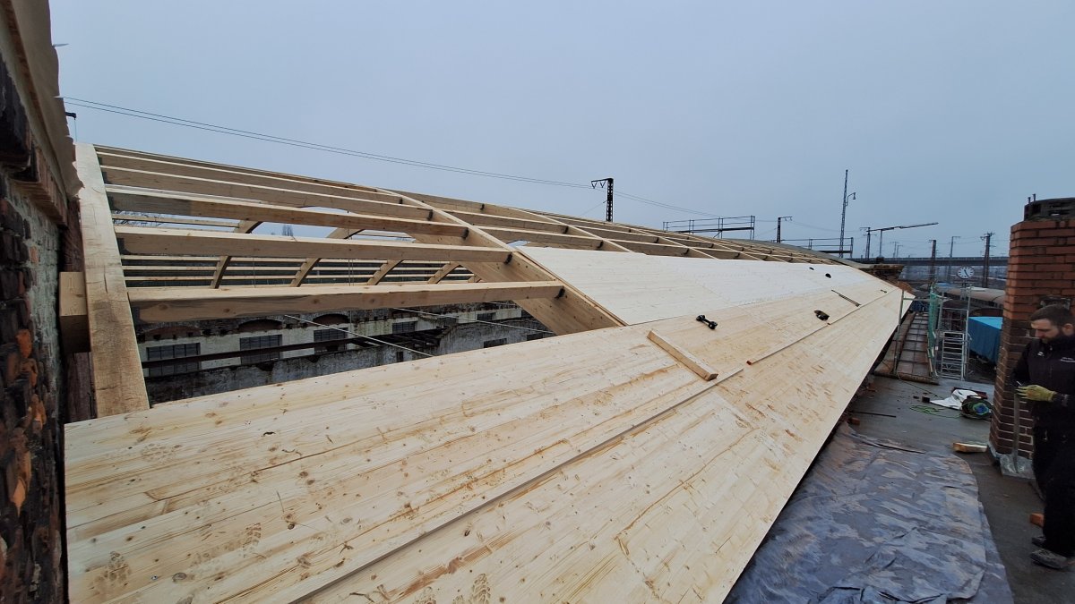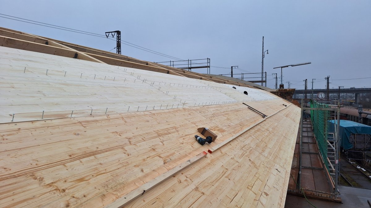 - Die Dacharbeiten am Rechteckschuppen haben begonnen. Wir haben diese Woche schon in zwei Beiträgen hierüber berichtet (beide Berichte finden Sie hier und hier).