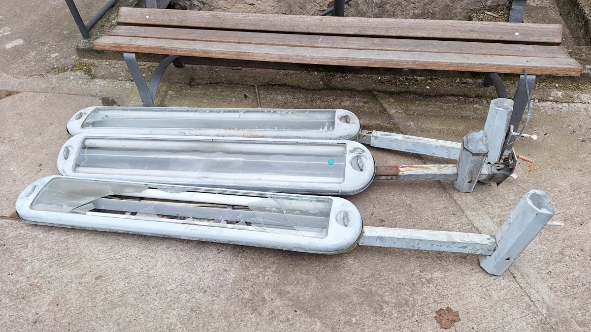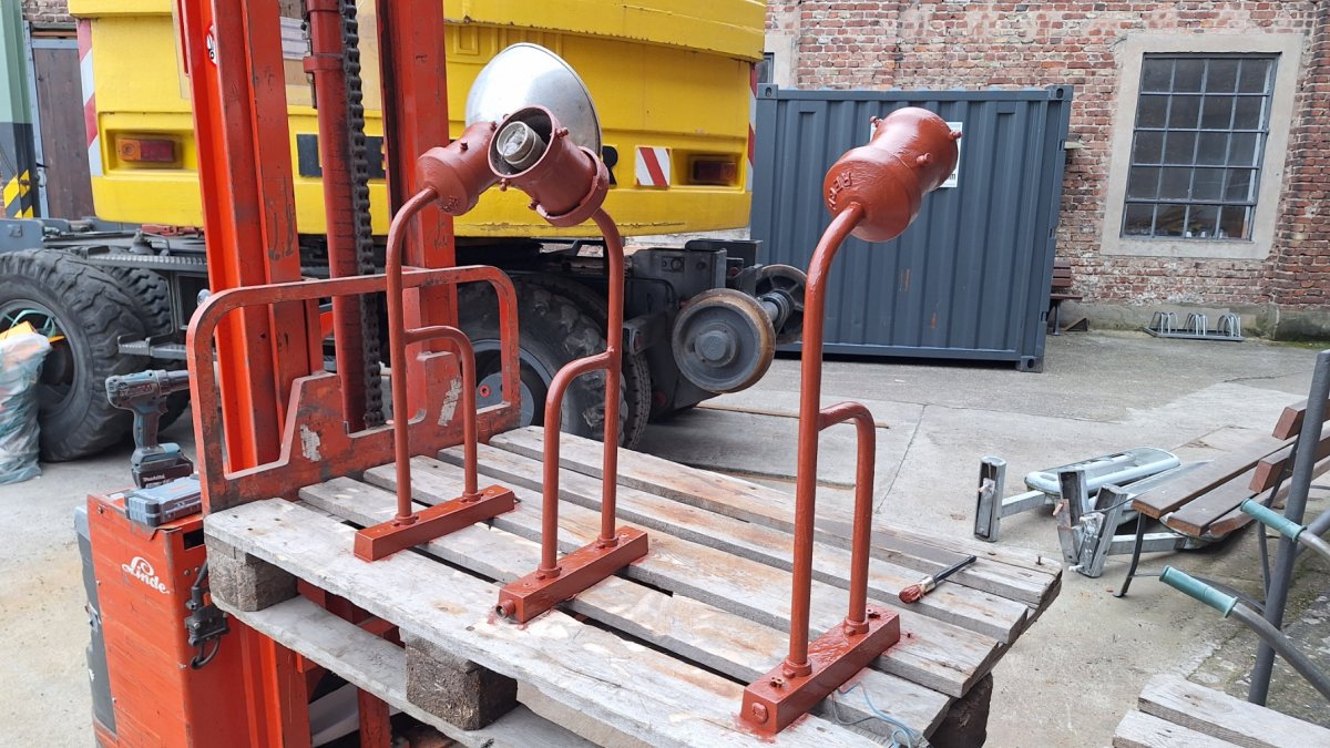 - Am Südschuppen / Magazin wurden die alten Außenlampen abgebaut und mit der Restaurierung der Lampen, die zukünftig am Gebäude angebracht werden sollen, begonnen. Dafür wurden der alte Lack und Roststellen beseitig und die Lampen grundiert.
